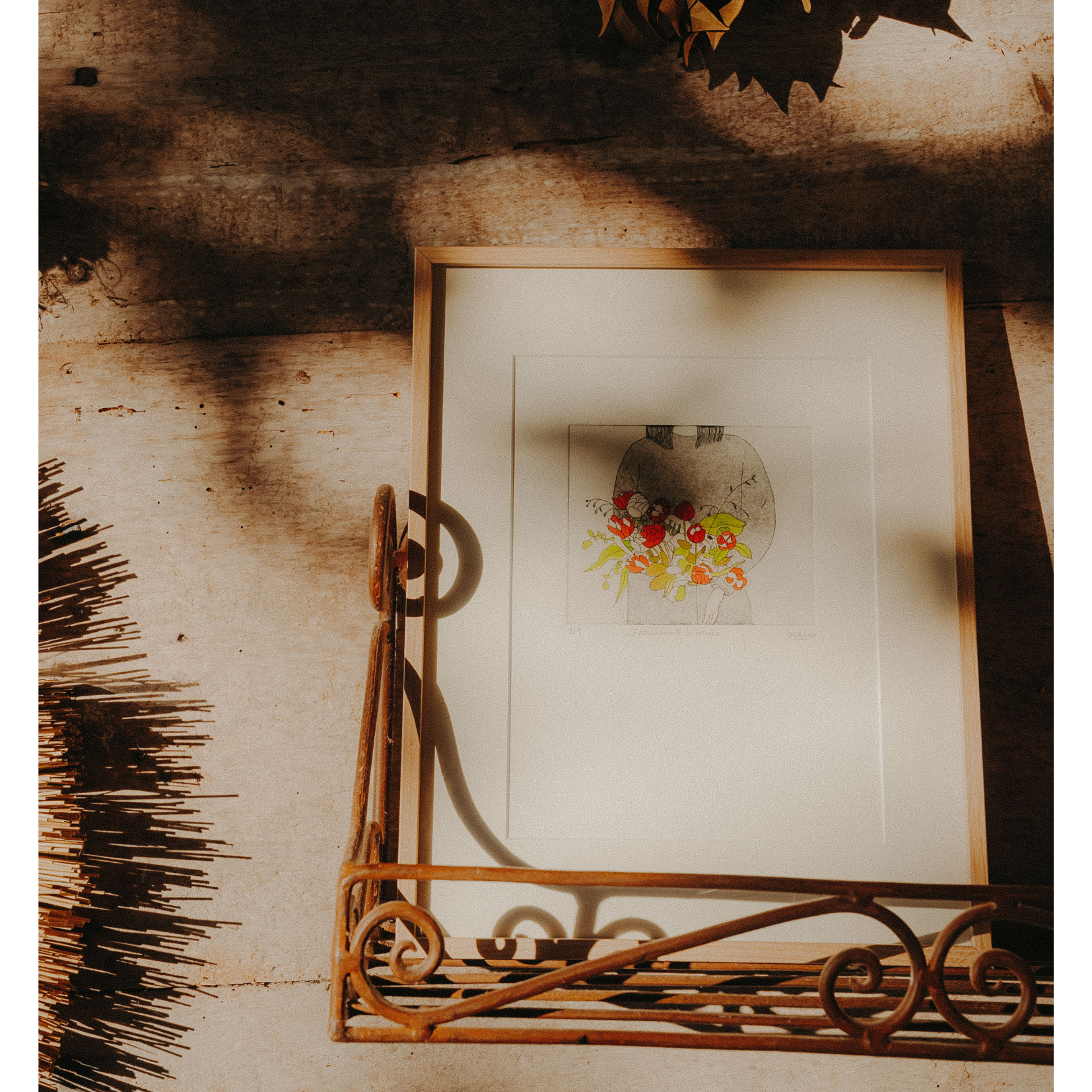 - Cadre : disponible en option. 24*30. Protection en verre, baguette couleur chêne.