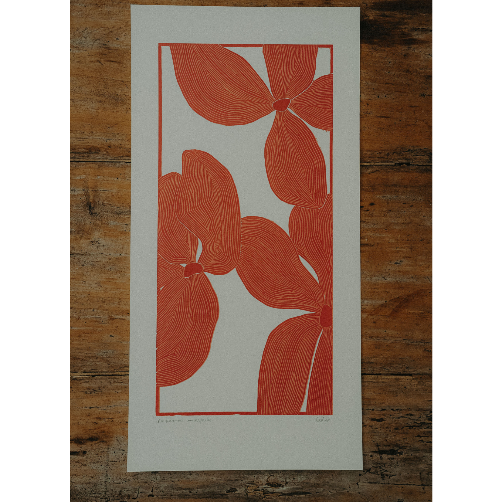 Parfaitement imparfaite, linogravure.