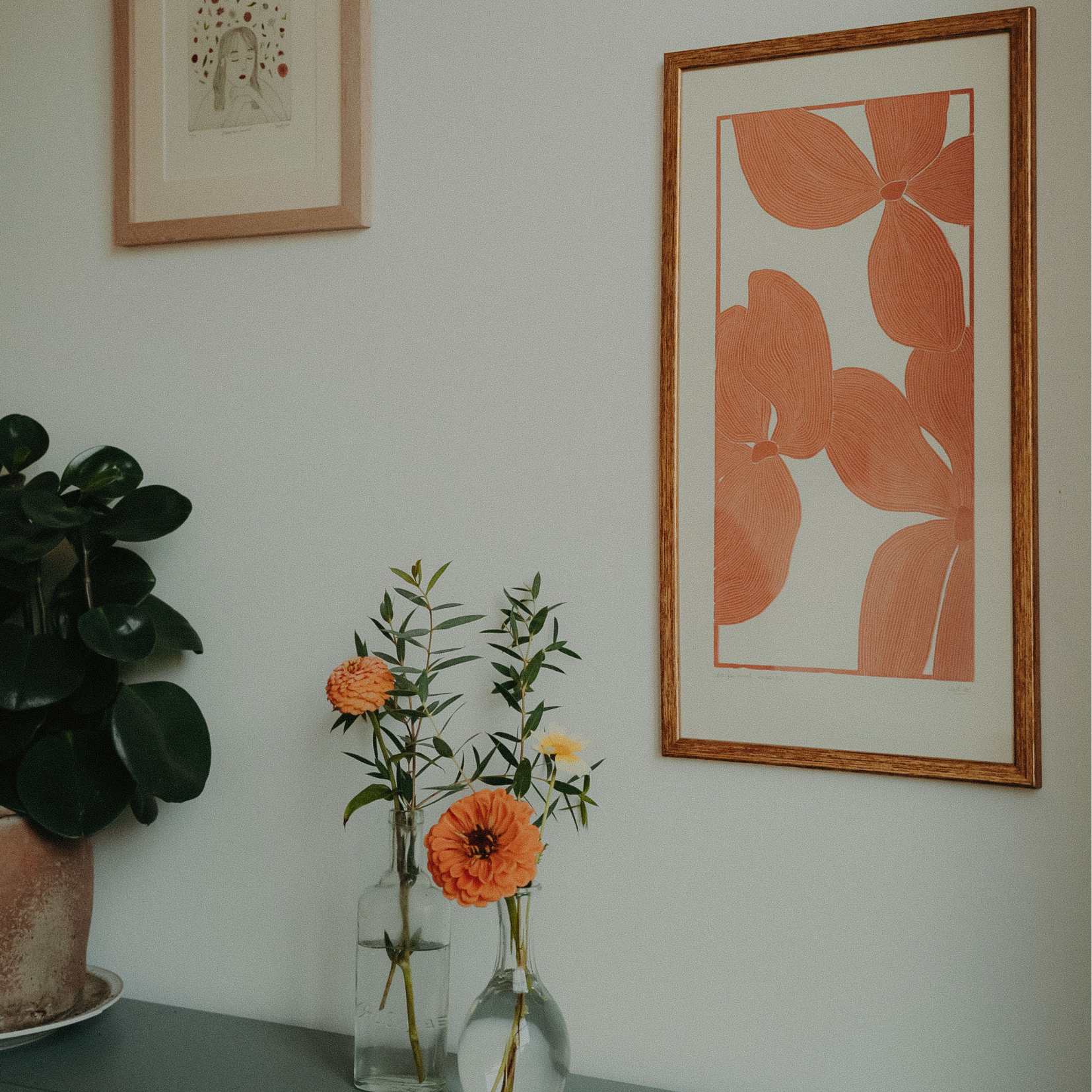 - Cadres : disponible en option. 25*50. Protection en verre, baguette dorée.