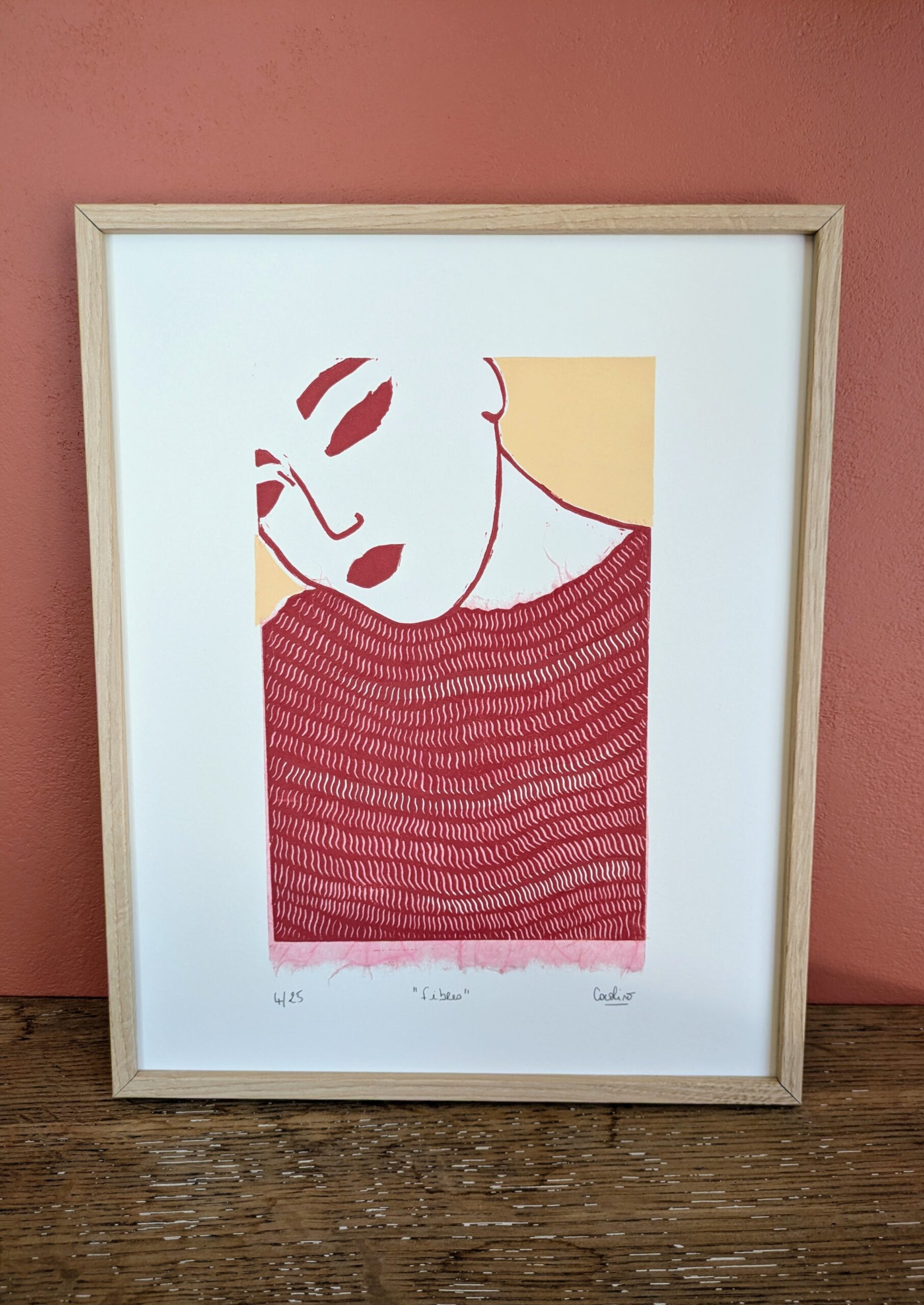 - Cadre : disponible en option. 24*30. Protection en verre, baguette couleur chêne.
